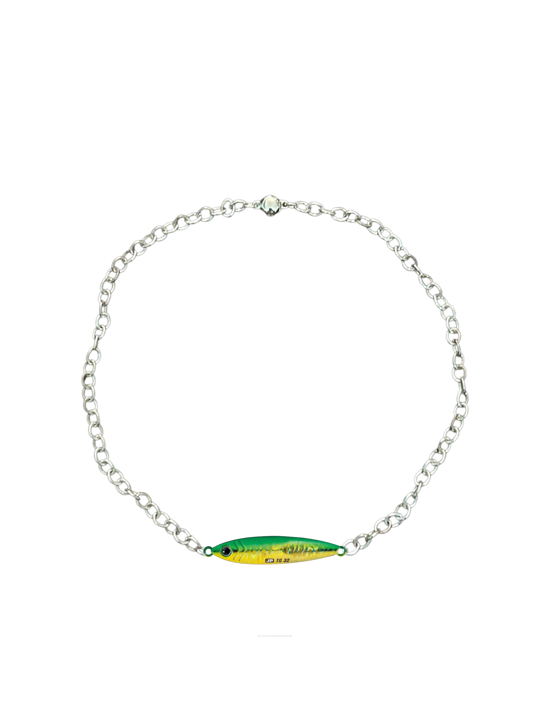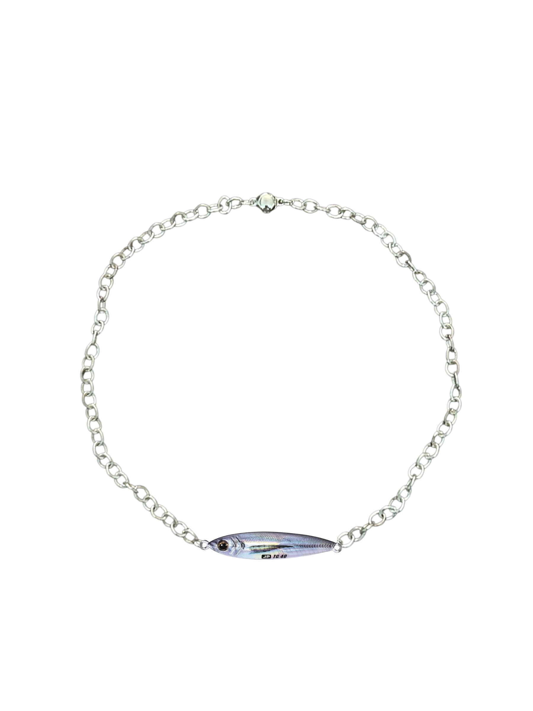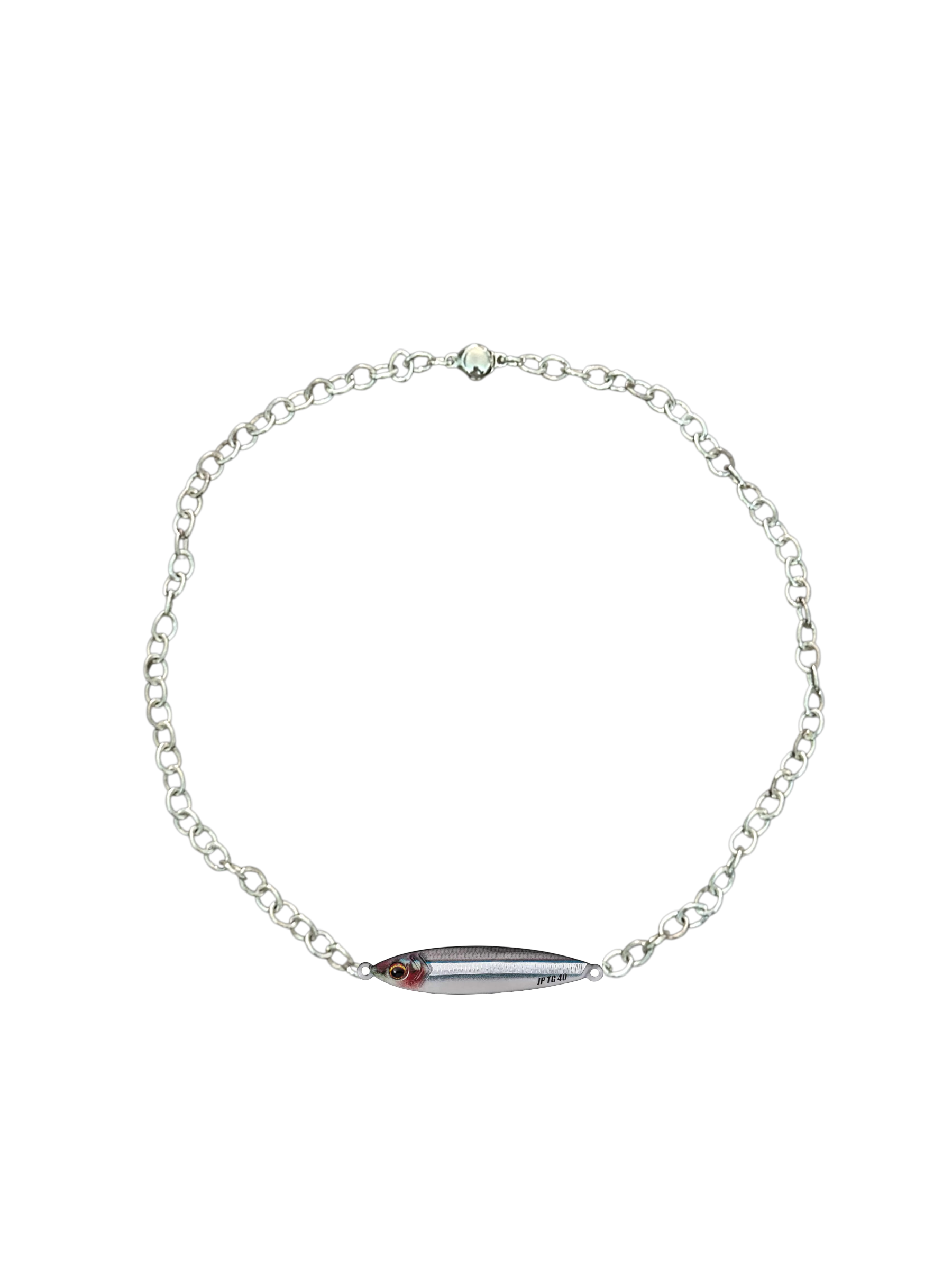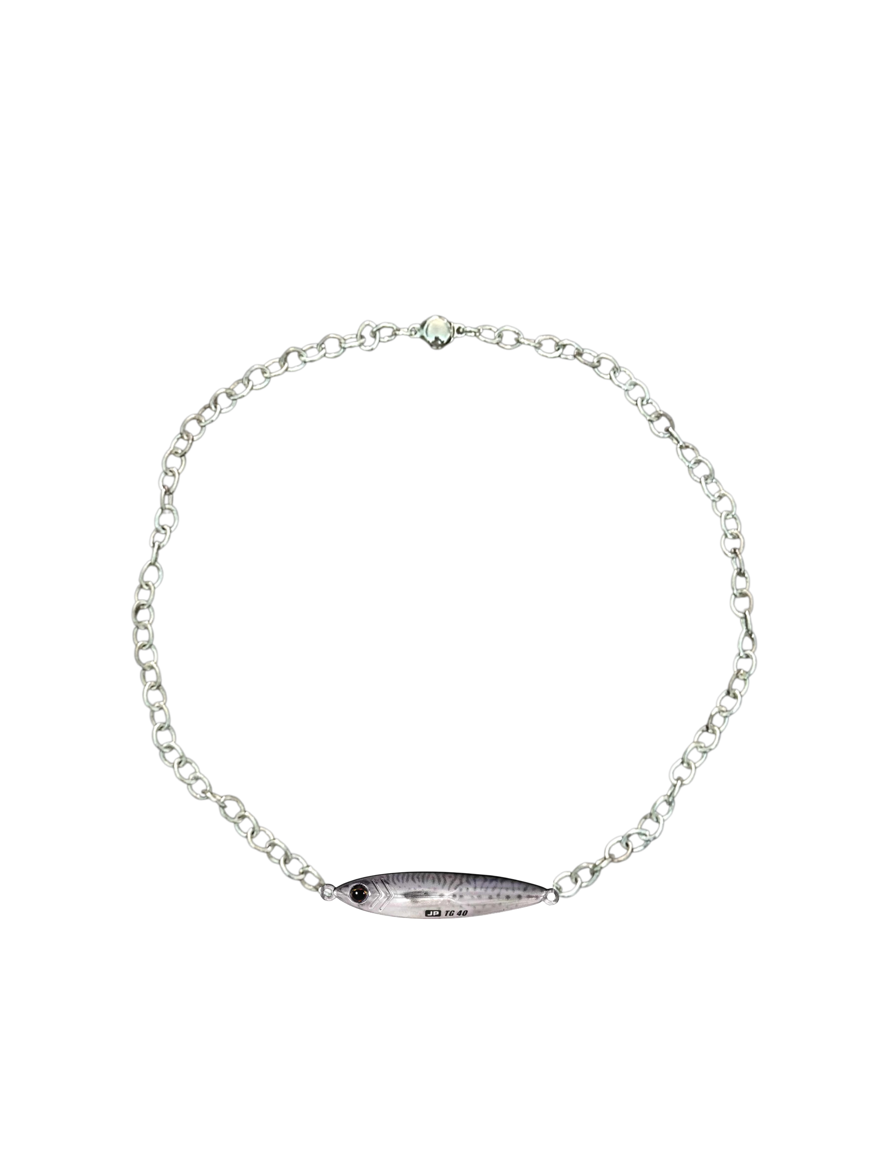 Materials: .925 Sterling Silver Chain, Tungsten Fishing Lure, Sterling Silver Magnetic Closure