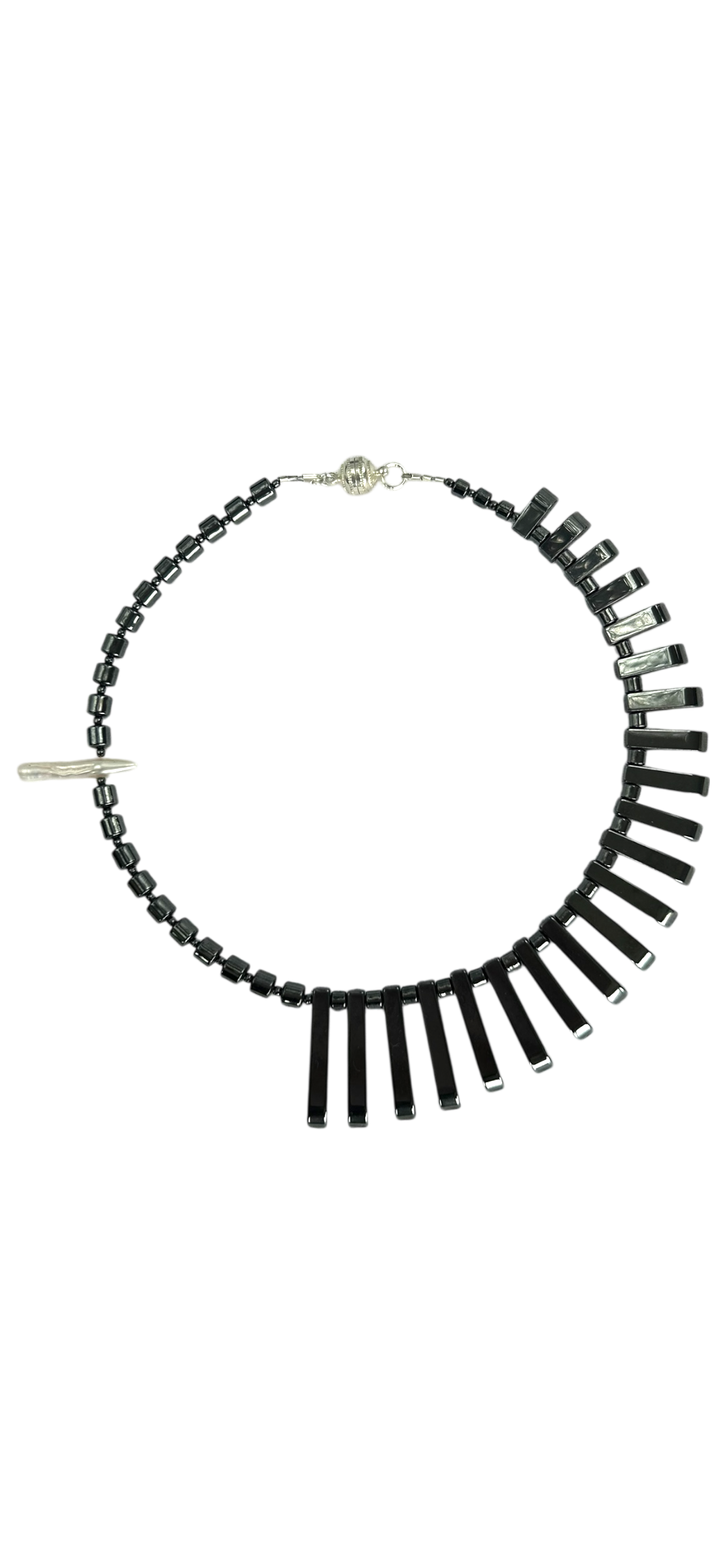 Materials: Hematite, Biwa Pearl, Sterling Silver